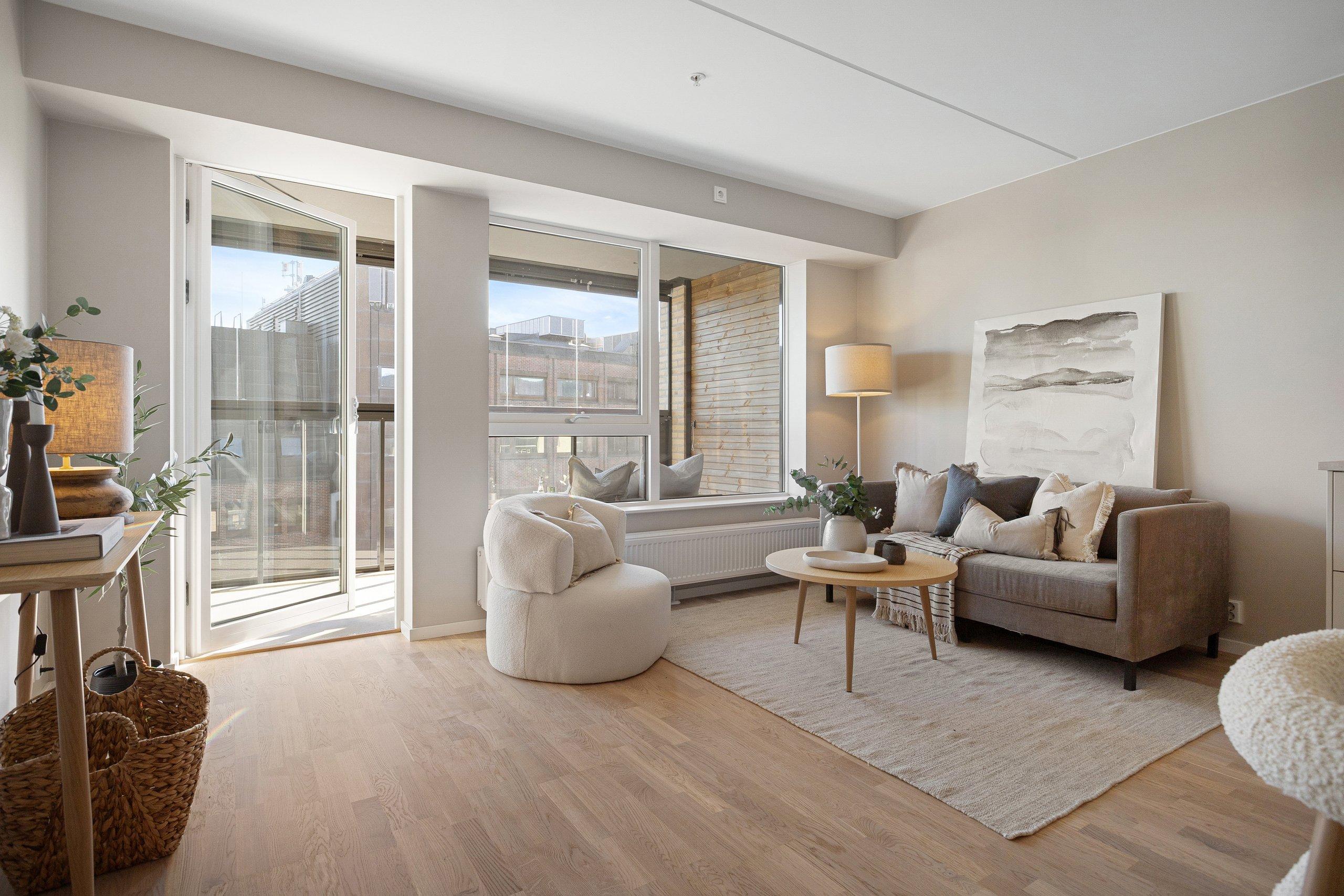 Denne leiligheten ligger i 4.etg. (av totalt 5 etasjer) i Hus 2 på Fusdal Torg.