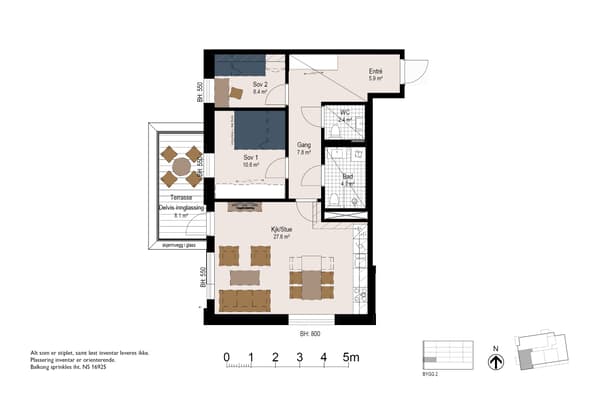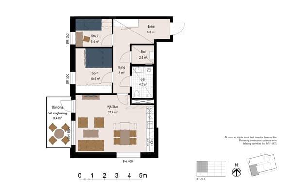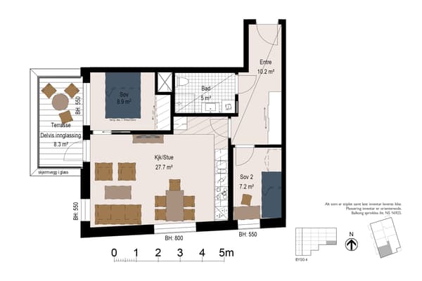 • Solrik 3-roms hjørneleilighet
