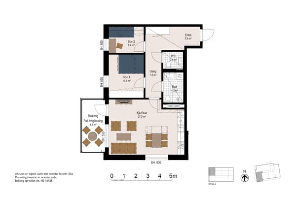 • Vestvendt innglasset balkong på 8,4 m2