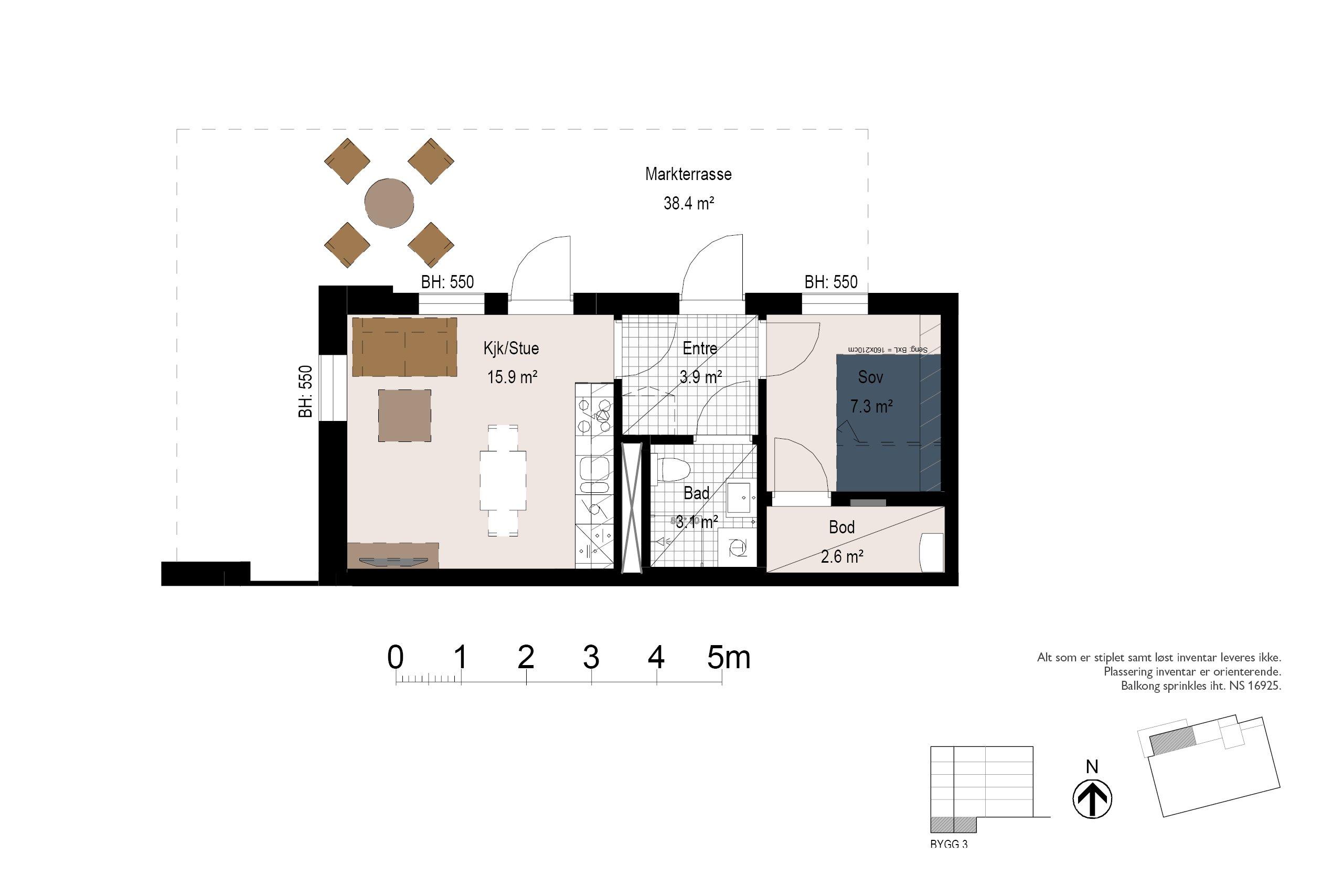 • 2-roms hjørneleilighet med direkte adkomst utenfra