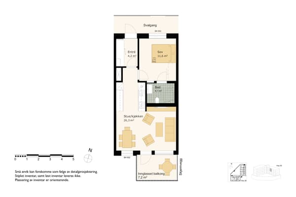 I planløsningen vises disponeringen av boligarealet. Se informasjon som mål, hvordan rommene er inndelt og plassering av balkongen.