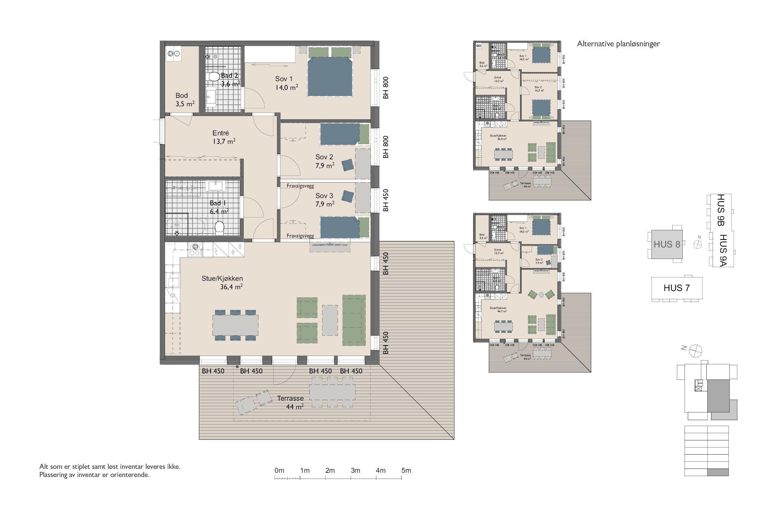 • Hovedsoverom med eget bad og skyvedørsgarderobe