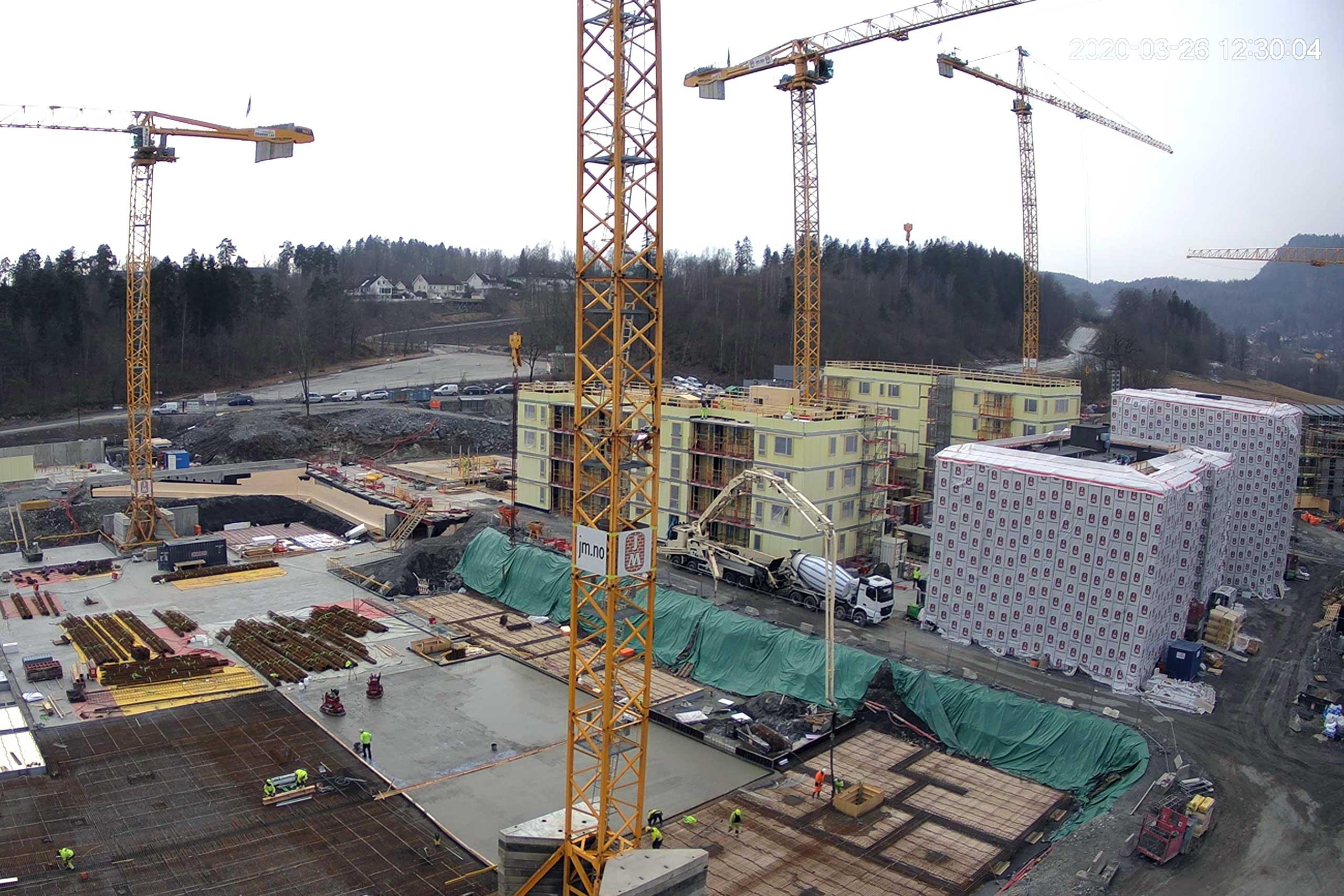 Se utviklingen på byggeplassen fra april til i dag! På byggeplassen jobbes det med bunnplaten i...