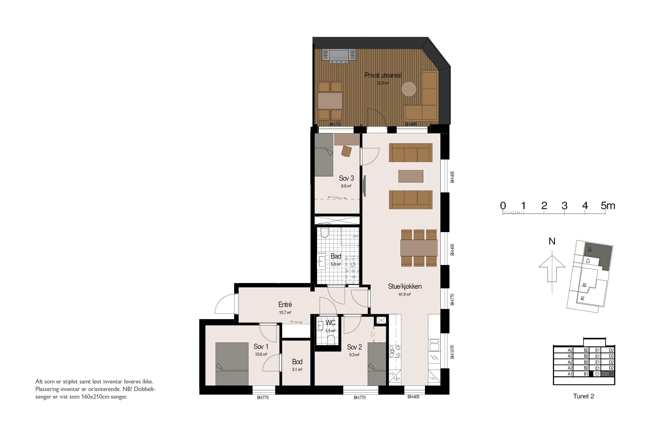 • Tre soverom hvor det ene har en suite omkledningsrom/bod