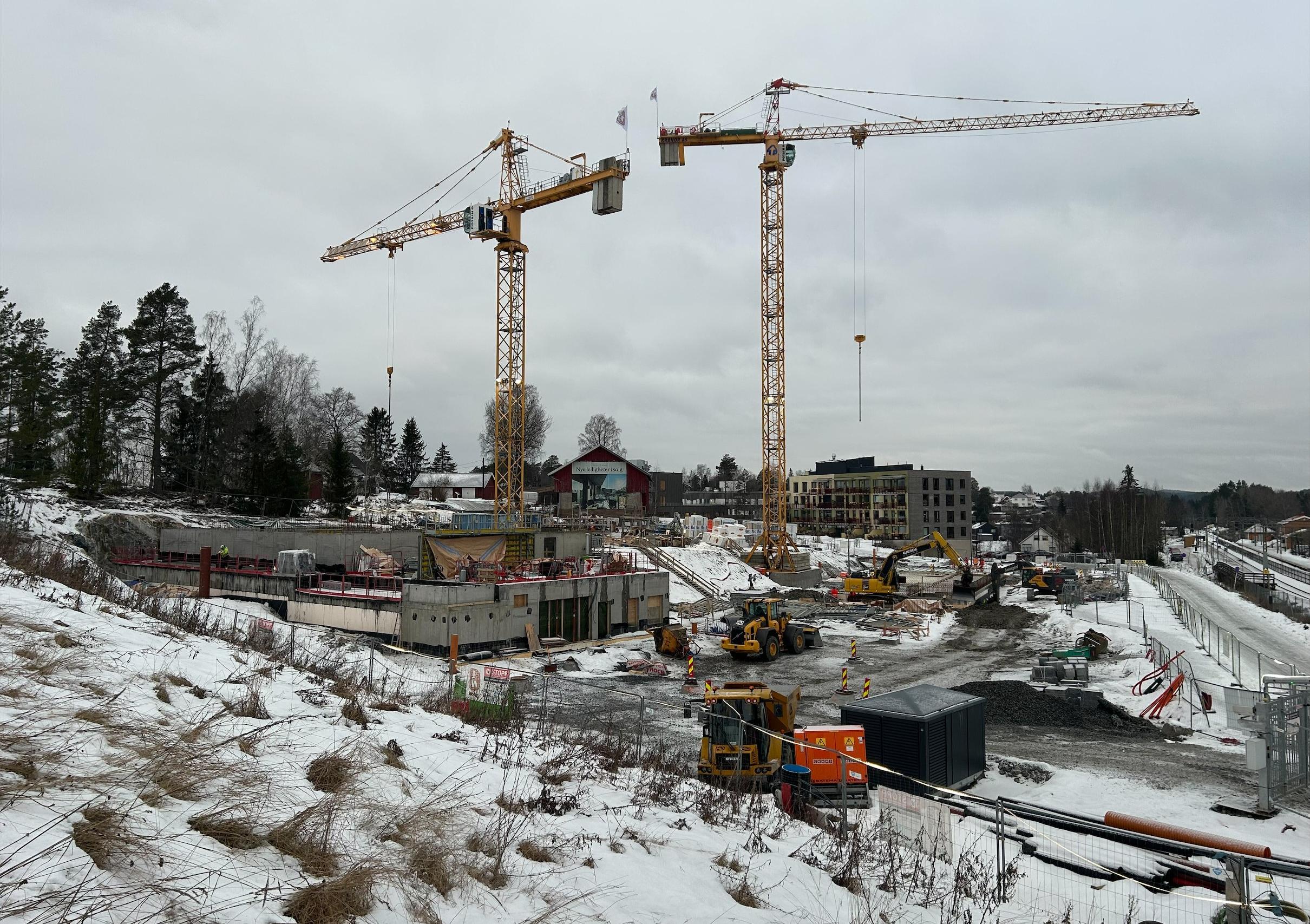 Det er kaldt på Langhus nå, men fremdriften går som planlagt. På Tunet 4 monteres ytterveggene for de første leilighetene i plan 1. På Tunet 2-3 pågår armering av gulvet til parkeringskjelleren.
