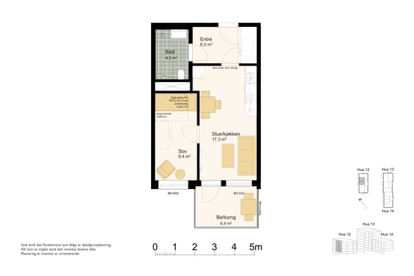 • Stort bad med praktisk benkeplate og overskap over vask/tørk og mulighet for badekar