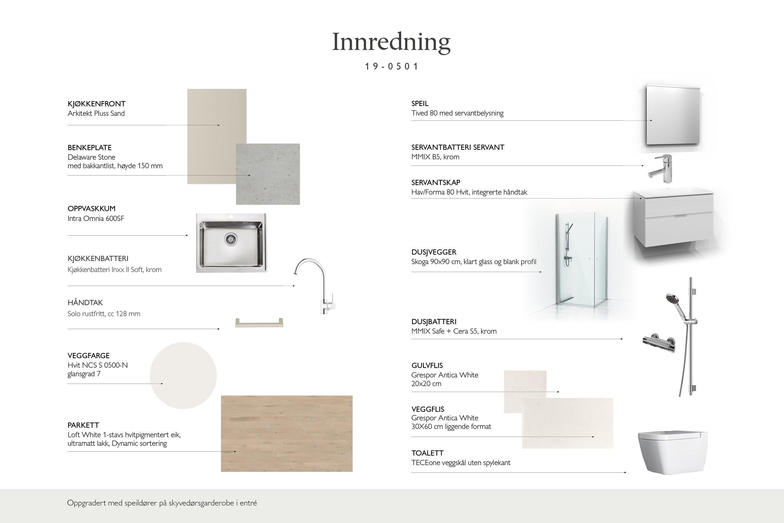 • Bad med praktisk benkeplate og overskap over vask/tørk og mulighet for badekar