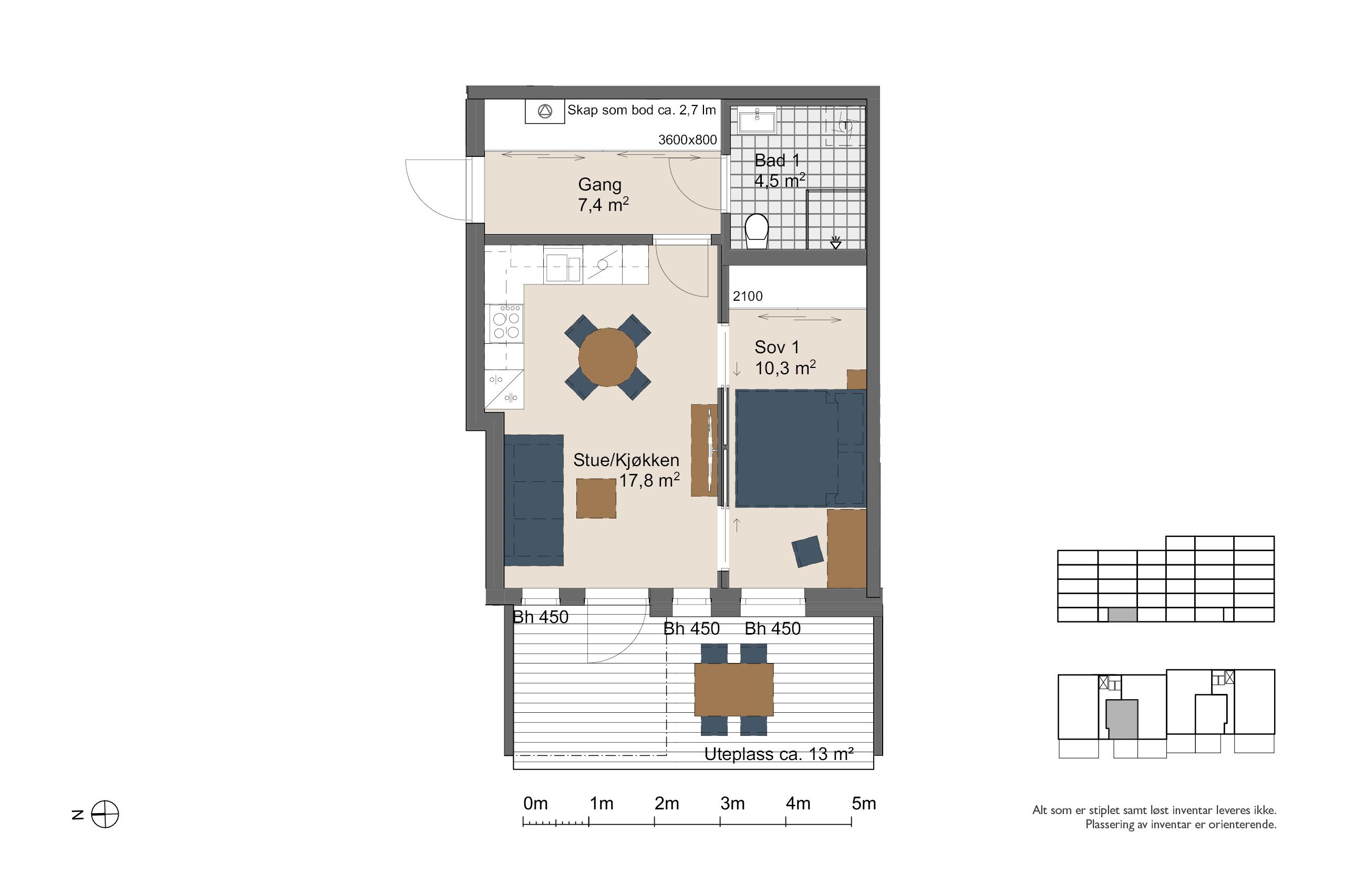 • Effektiv 2-roms leilighet med utgang til vestvendt terrasse på ca. 13 kvm