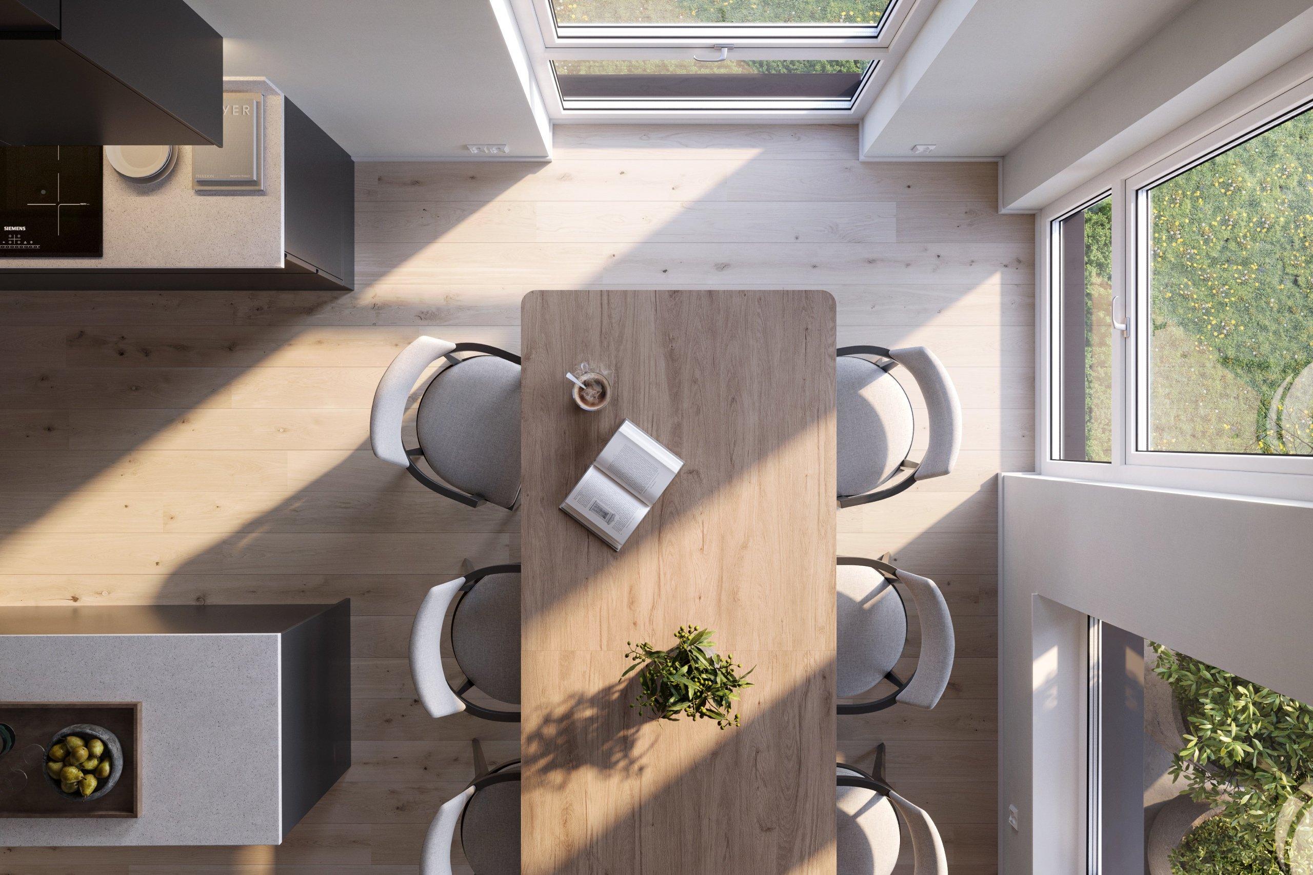 • Moderne og romslig bad med praktisk benkeplate og overskap over vask/tørk