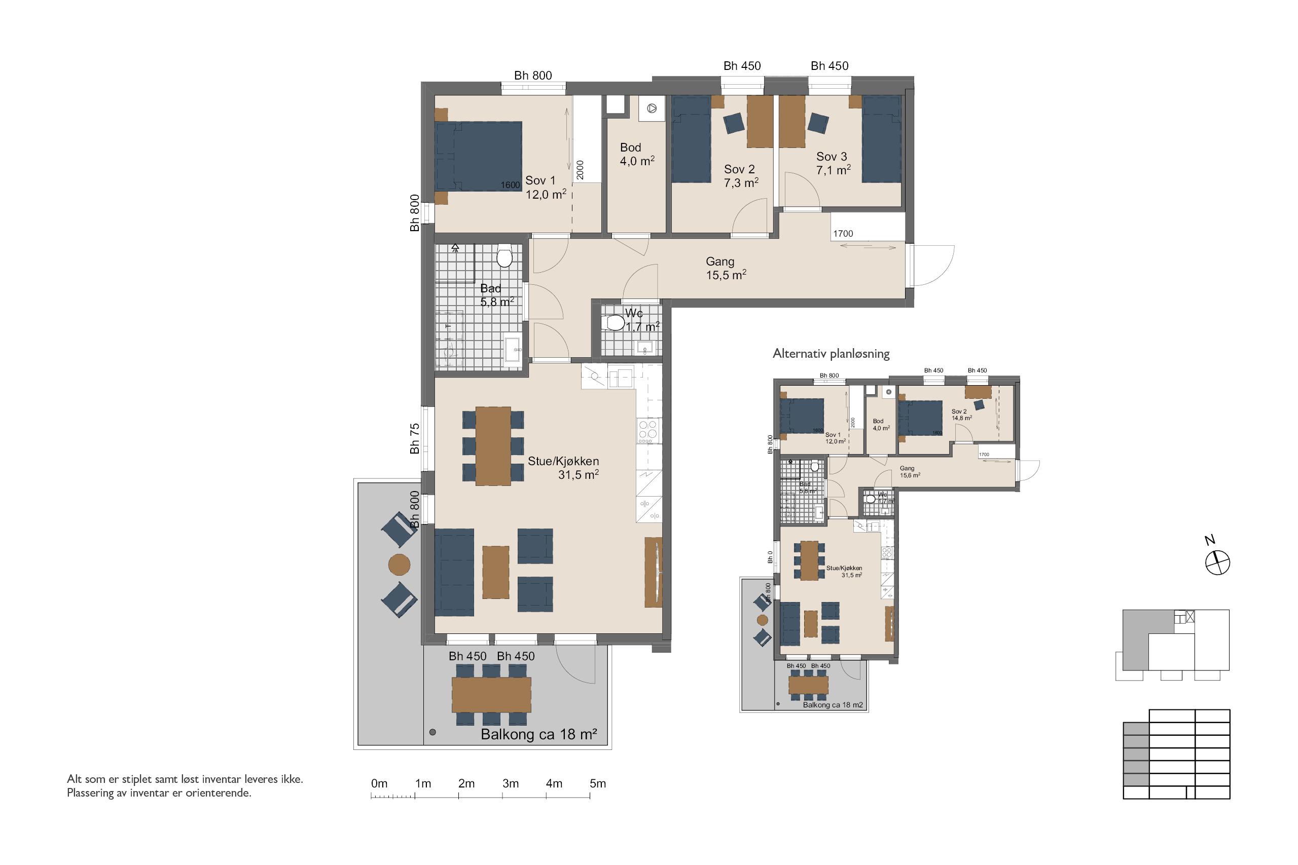 • Skyvedørsgarderobe på hovedsoverom og i entré