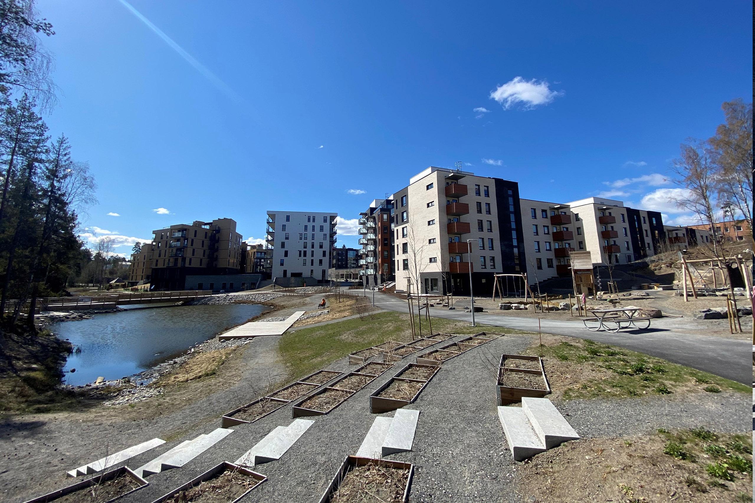 På torget på Myrvoll stasjon ligger Kiwi, Hudpleiesenteret Han og Henne, Nordby Bakeri, og interiørbutikken Det gledes.
