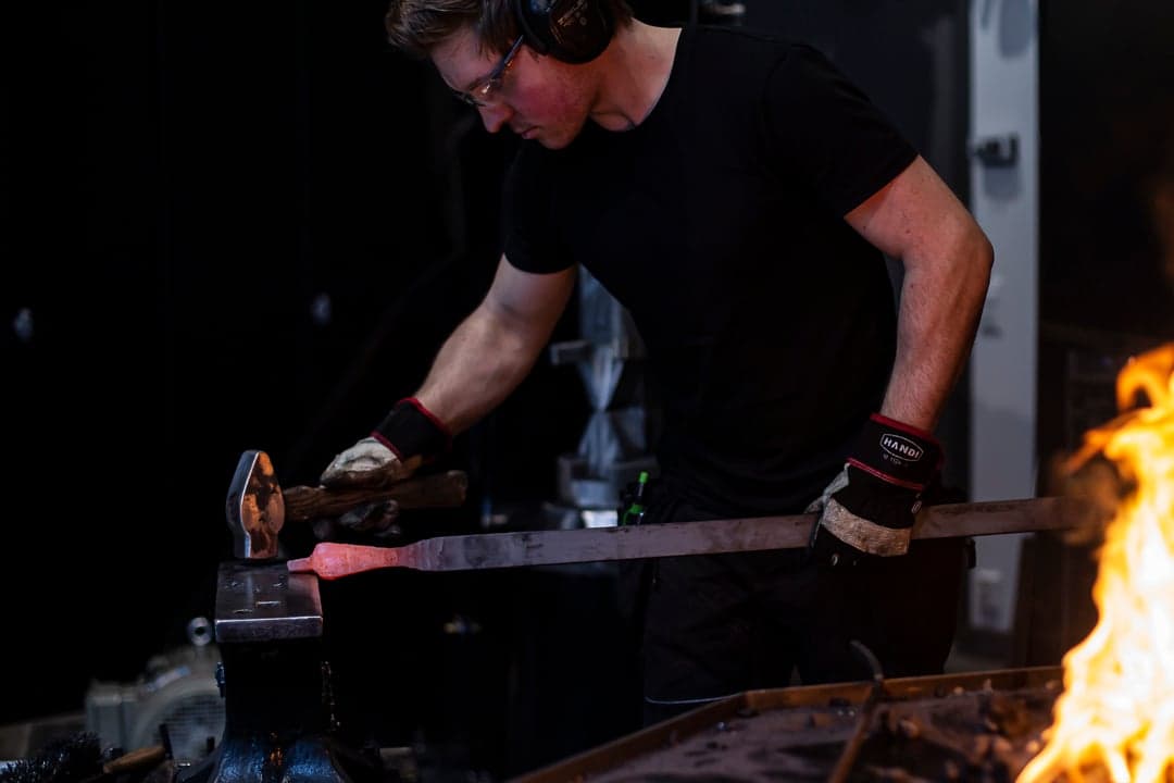 - Lokalet i den gamle fabrikken valgte meg. Atmosfæren og høyden under taket er perfekt. Jeg synes jeg har lykkes med å skape en helt unik følelse når man kommer inn i smia. Min egenproduserte, svevende esse er montert 4 meter oppe i taket, forteller Marcus.