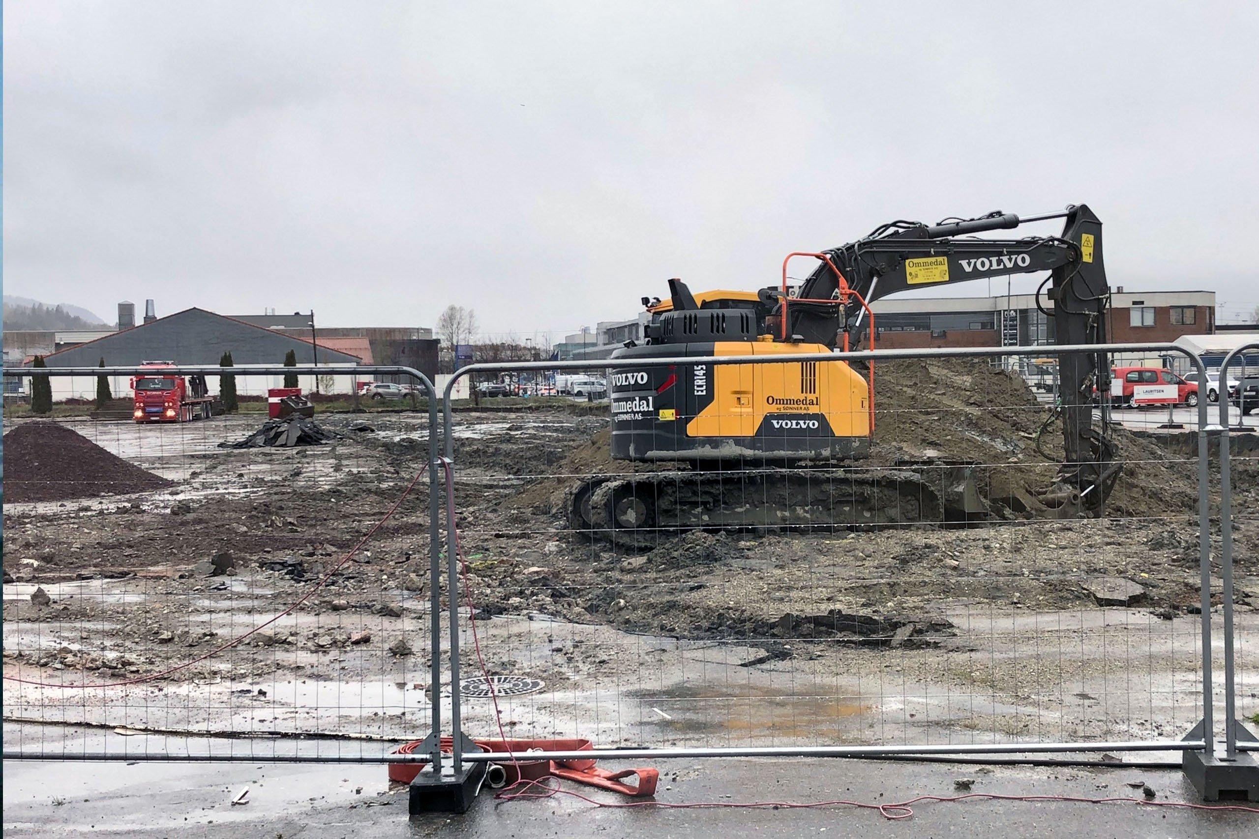 Akkurat nå starter vi opp med spunting langs Arboalleen og Sundlandveien. Deretter skal det graves ut for kjelleren, støpes en tynn plate og peles ned til fjell.