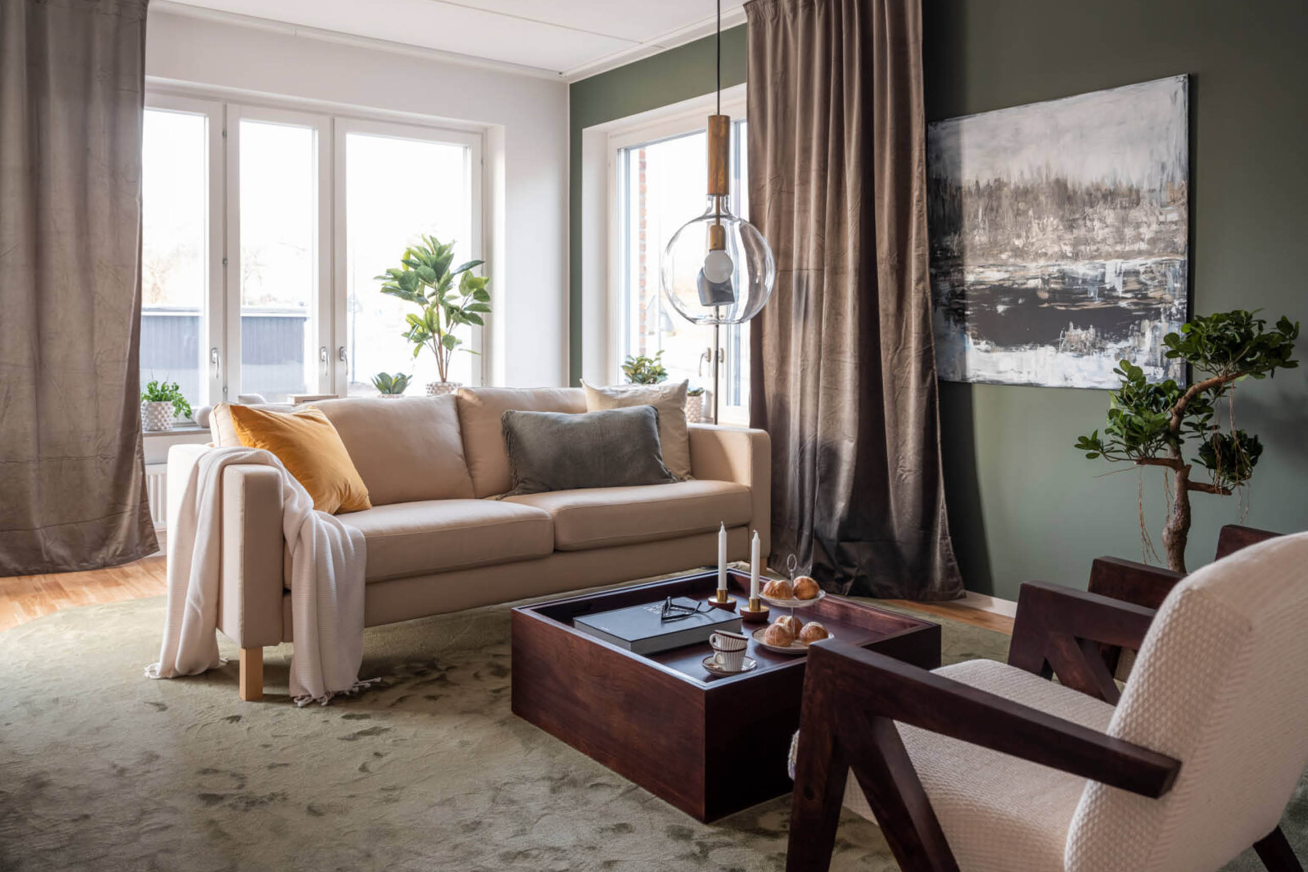 Få en ekstra lys og luftig bolig ved å male veggene i lyse fargenyanser, ettersom disse reflekterer både kunstig og naturlig lys. Det anbefales ikke å kombinere for mange farger, men du kan gjerne male én vegg i en kontrastfarge. Dette bidrar til å skape dybde i rommet. Et annet triks for å øke romfølelsen, er å male vegg og lister i samme farge.