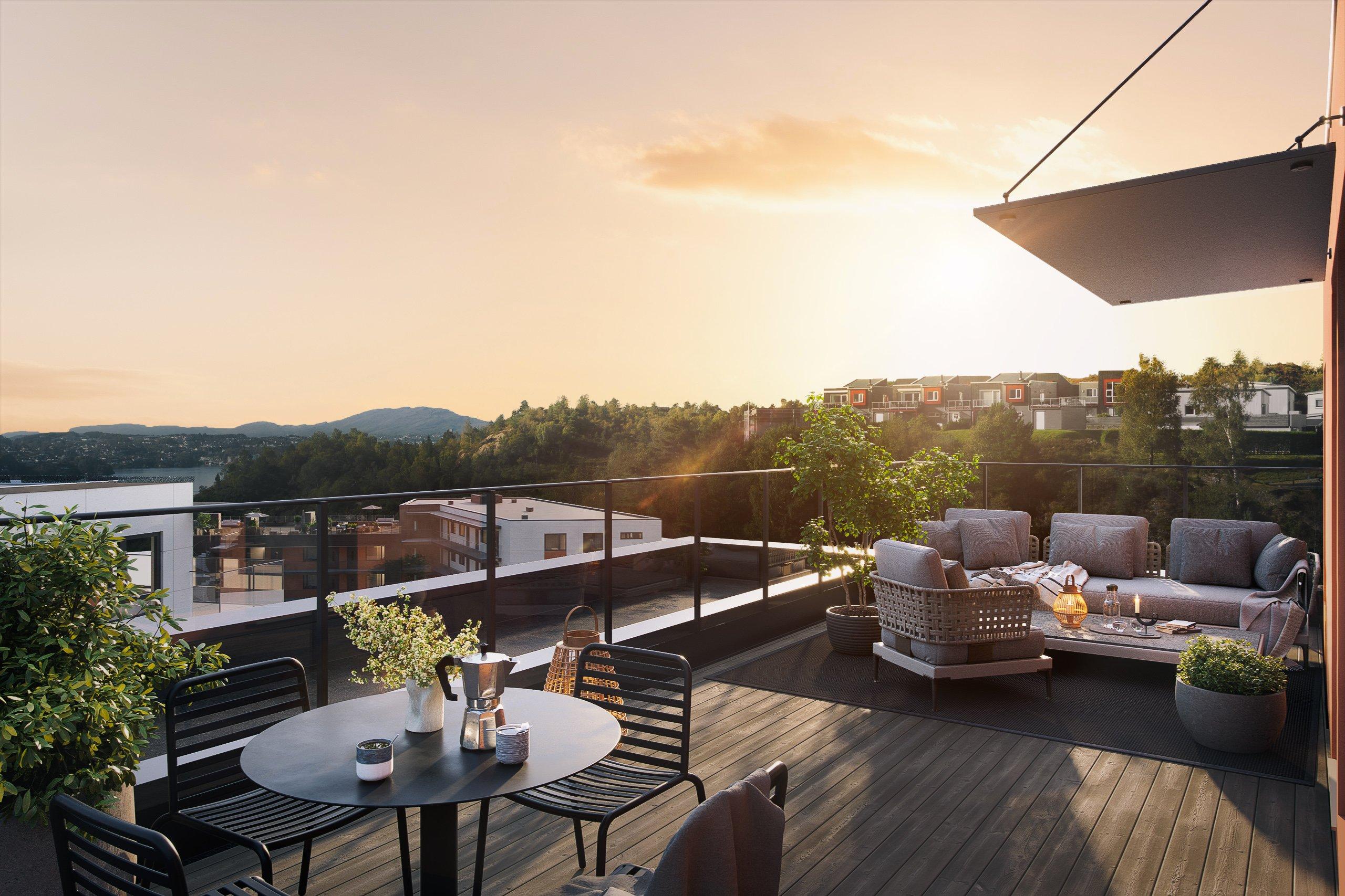 Ørnafjellet blir et kjempefint nabolag med sosiale fellesområder og masse grøntarealer. Området ligger høyt i terrenget med fantastisk utsikt mot Byfjorden, sier Henriette Kaland Vågenes, salgsleder i JM Norge.