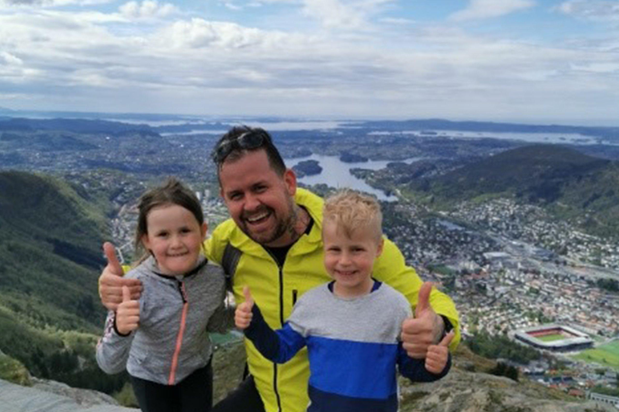 Gift og to barn, jente på straks 8 og en gutt på 6 år. Utdannet byggingeniør og tømrer.