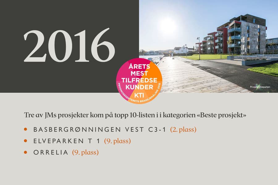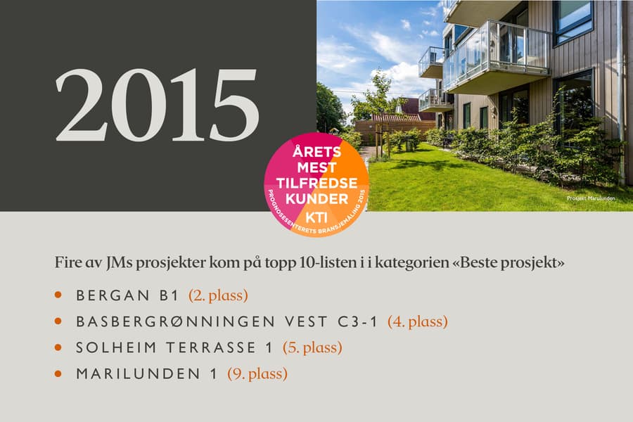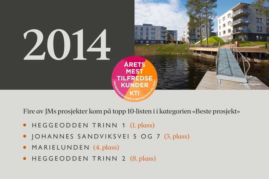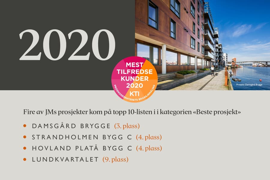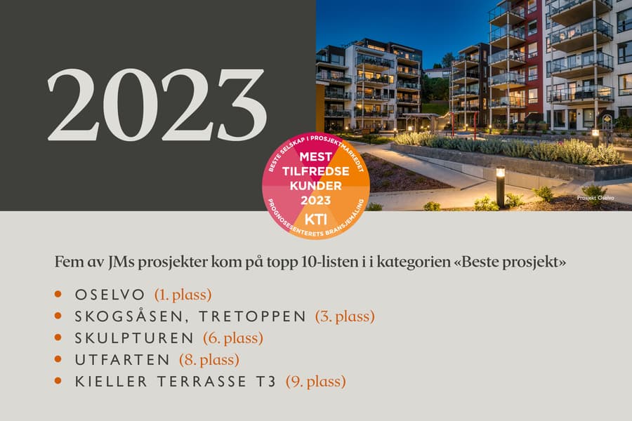 JM har i over 80 år hatt et sterkt fokus på kundene, helt fra starten i 1945. Grunnleggerens visjon om å bygge kvalitetsboliger som møter kundenes behov har vært en grunnpilar i vår virksomhet. Gjennom årene har vi kontinuerlig jobbet for å forbedre kundeopplevelsen og resultatet av arbeidet er nær 50 gode plasseringer på Prognosesenterets KTI-målinger. Vi jobber stadig med å tilpasse oss kundenes forventninger og sikre at alle deler av organisasjonen er med på å levere en god kundeopplevelse. Her kan du lese mer om hvordan vi jobber, resultatene vi har oppnådd, og hva kundene våre mener om oss.