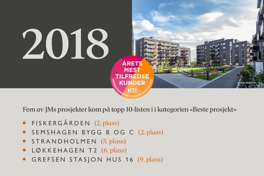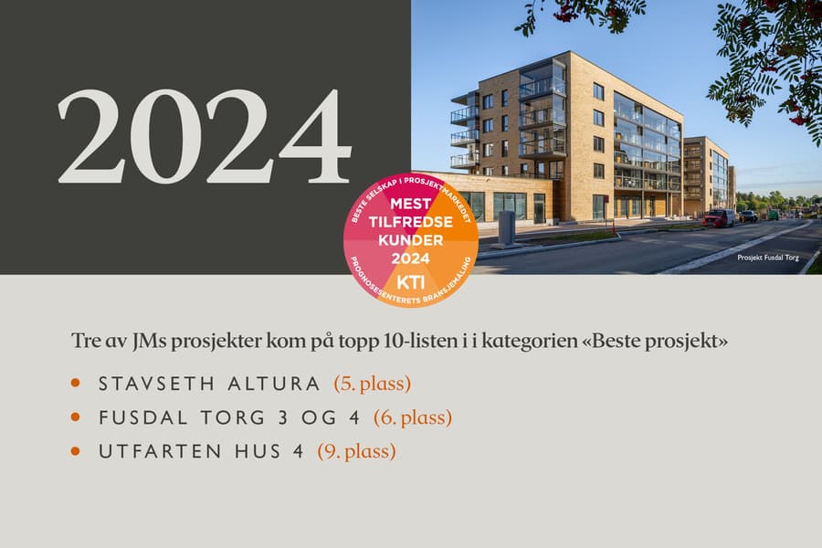 JM har vært en aktiv deltaker i KTI-målingene siden 2009, og var faktisk en pådriver for at disse målingene ble etablert i Norge. Å ha kundefokus er ikke en kortvarig kampanje eller et raskt skippertak for oss. Bak målet om å ha bransjens mest fornøyde kunder ligger et langsiktig arbeid som har tatt oss mange tiår å utvikle. Det er helt avgjørende for oss å kontinuerlig evaluere kundetilfredshet. Dette gir oss innsikt i hva vi gjør bra, og hvor vi kan forbedre oss. Målingene fra Prognosesenteret gir oss et solid grunnlag for å tilpasse både produkter og tjenester etter kundens behov og forventninger.