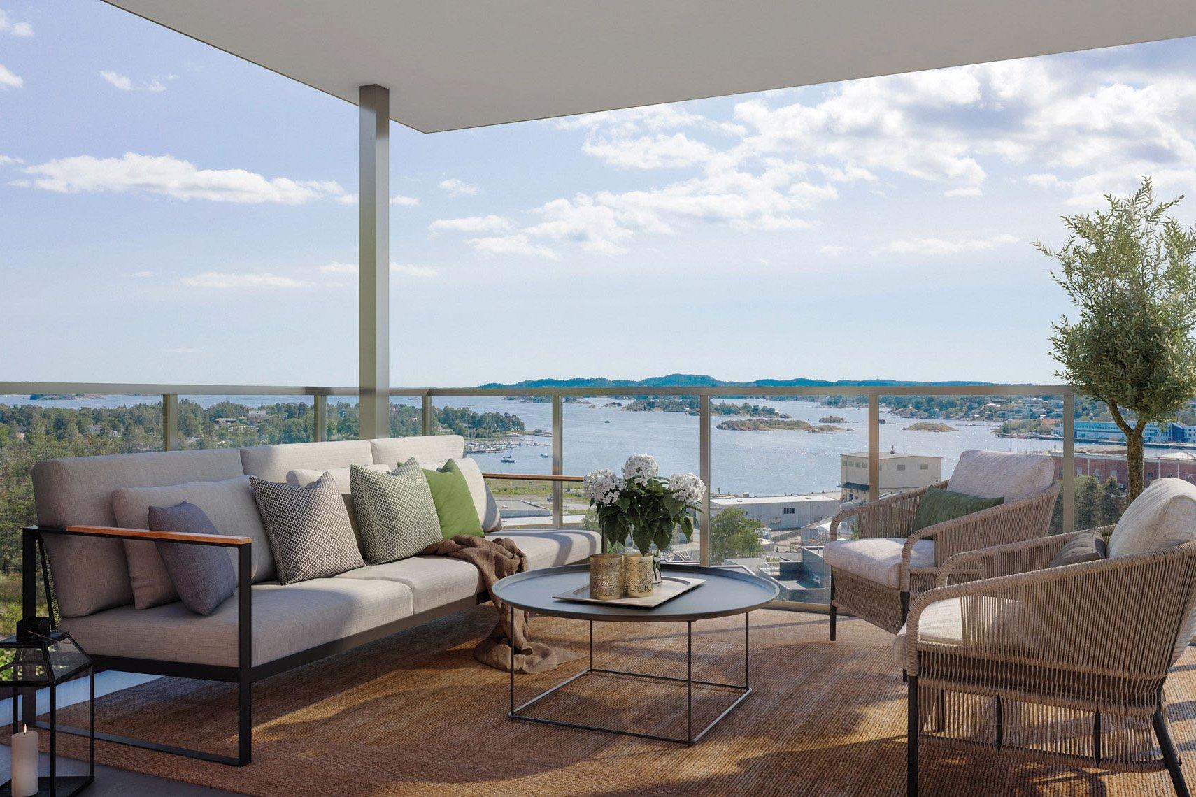 - Syd-vestvendte markterrasser/balkonger med flott sjøutsikt
