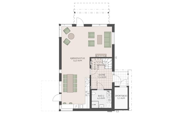 • Terrasse på 10 kvm som kan benyttes som inngangsparti