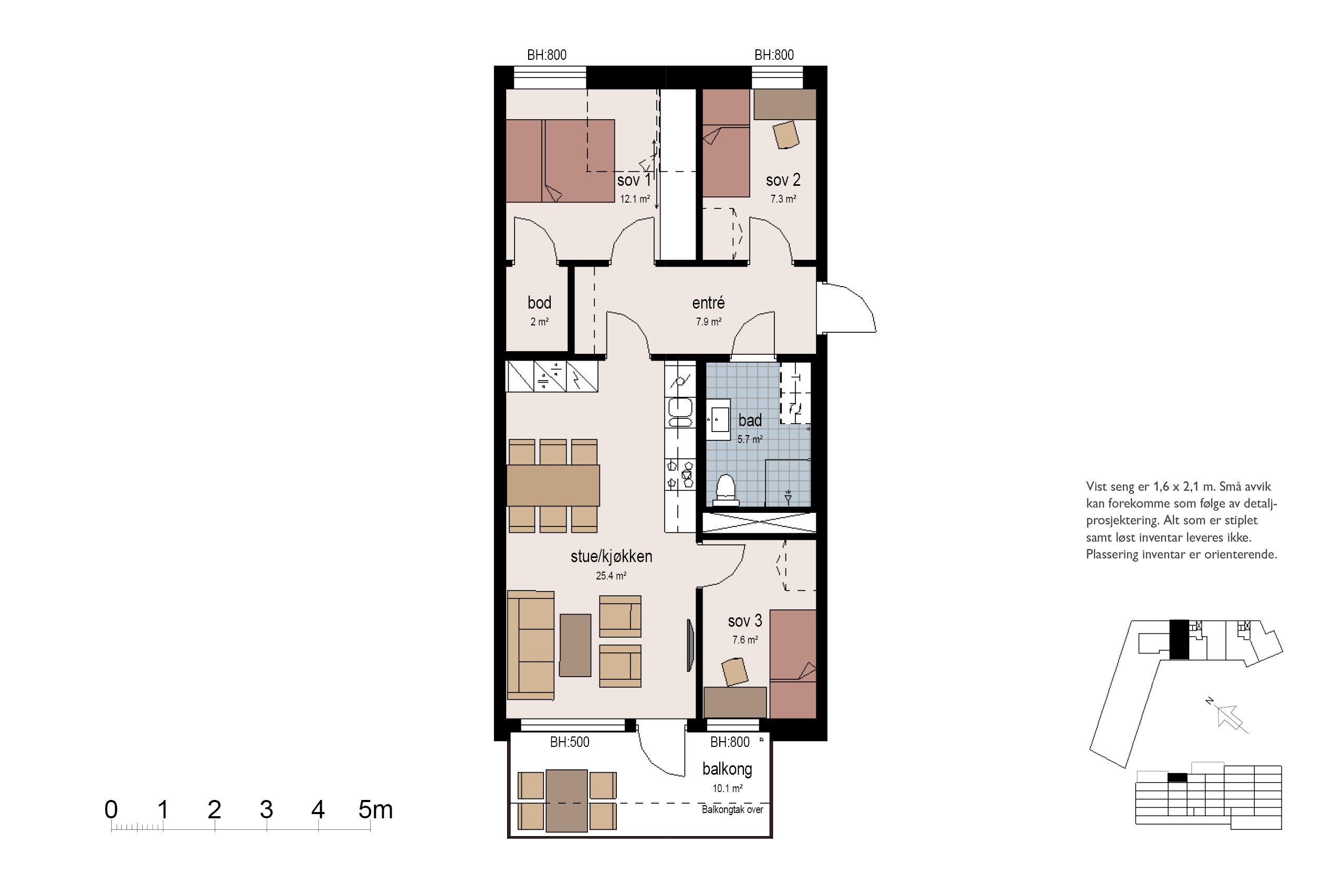 I planløsningen vises disponeringen av boligarealet. Se informasjon som mål, hvordan rommene er inndelt og plassering av balkongen.