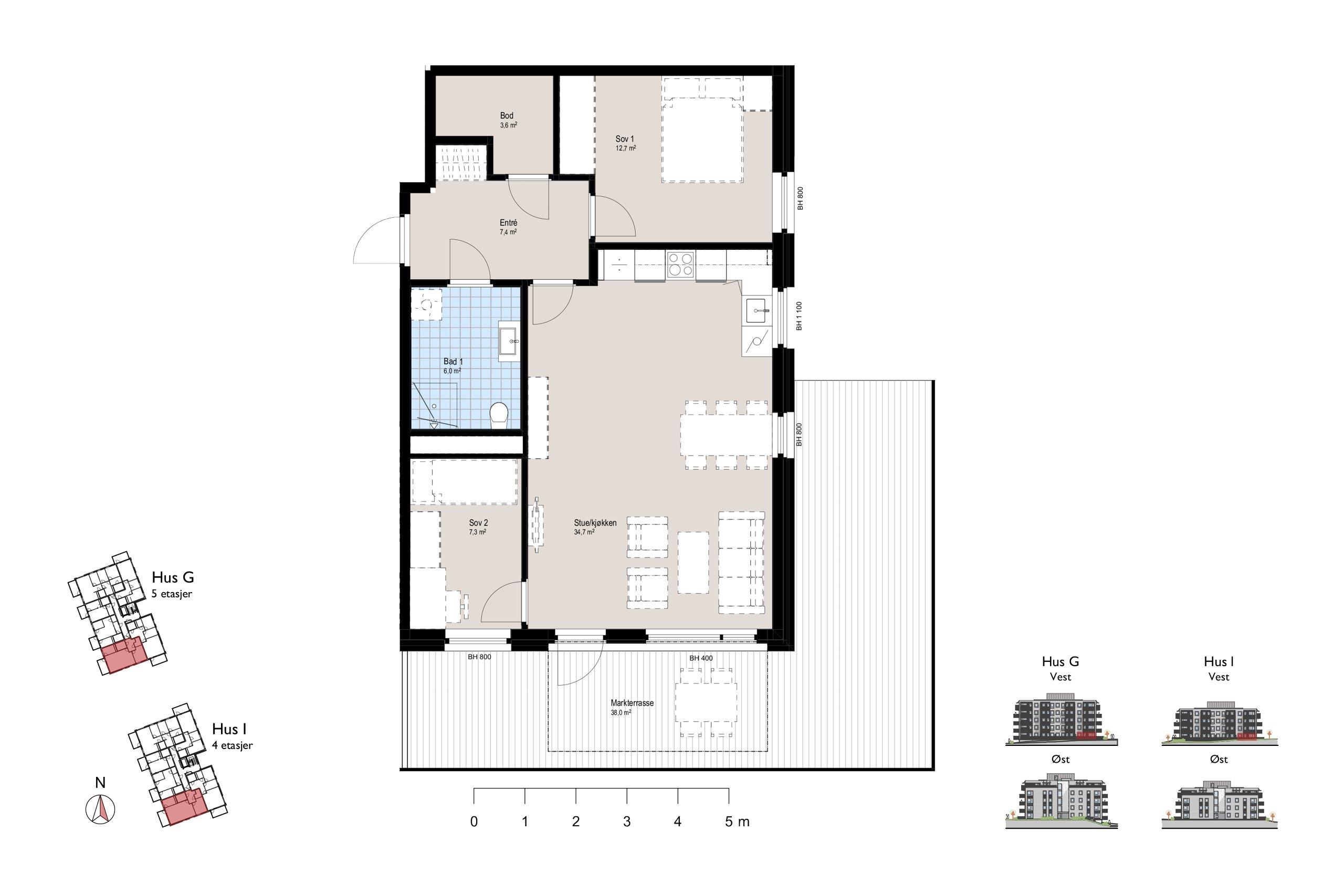 Stor og fin 3-roms leilighet i byggets 1.etasje. Her får du;