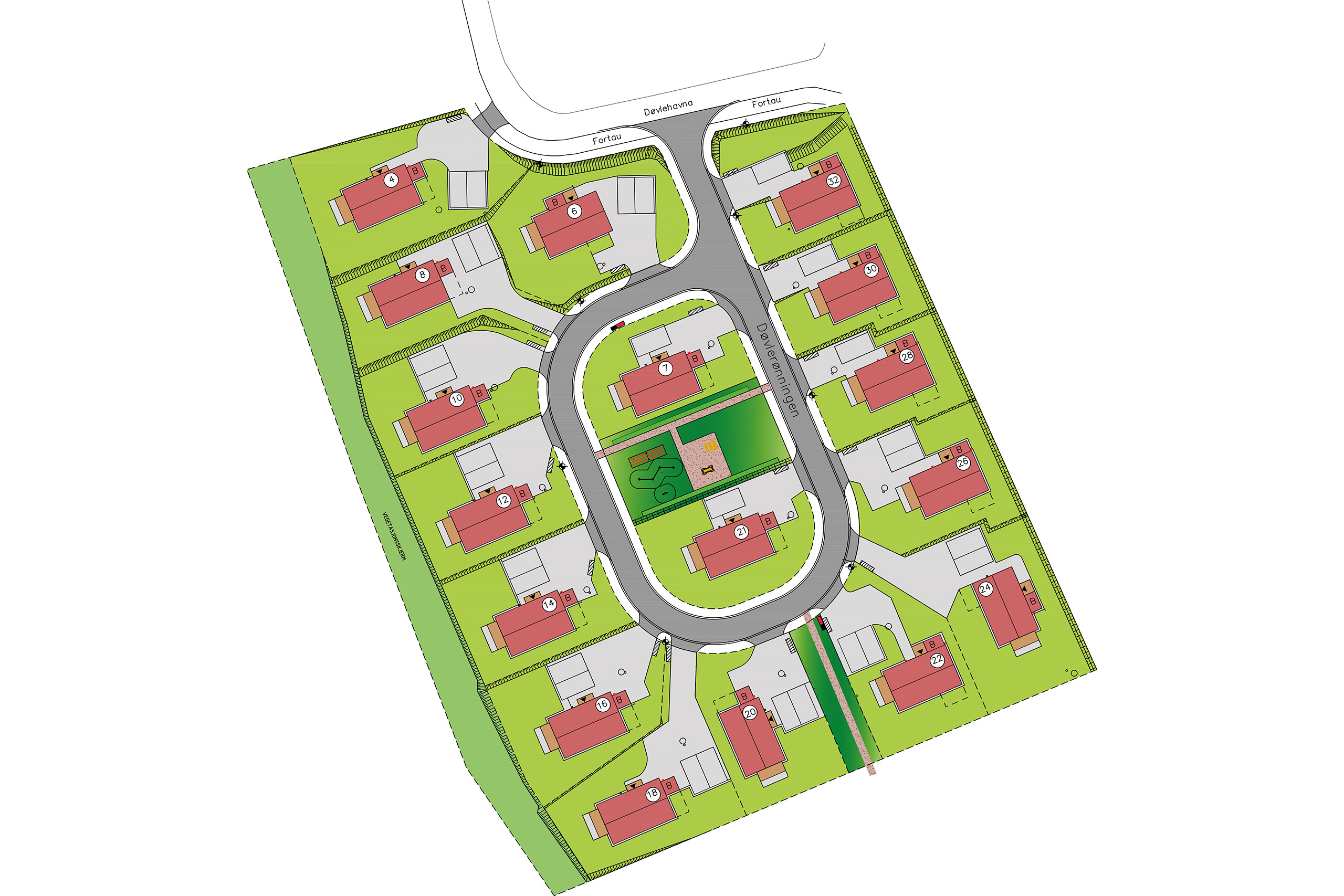 Hus 30 har en fin beliggenhet på feltet med gode parkeringsmuligheter. Dette huset vil få en fin, privat uteplass mot sørvest med gode solforhold på tomten.