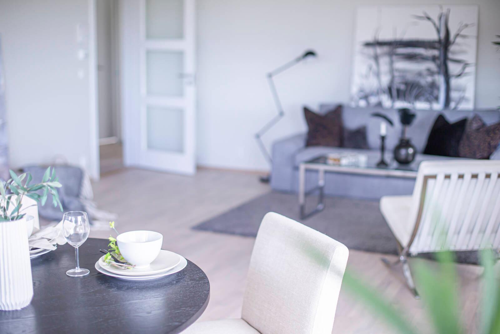 Lyst og lekkert, naturfarger og pasteller. Denne leiligheten er det lett å la seg inspirere av. Drømmeboligen finnes her på Presterødalléen. Utsikten på bakkeplan er like slående som i høyden.