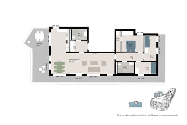 - 3 gode soverom med plass til garderobe