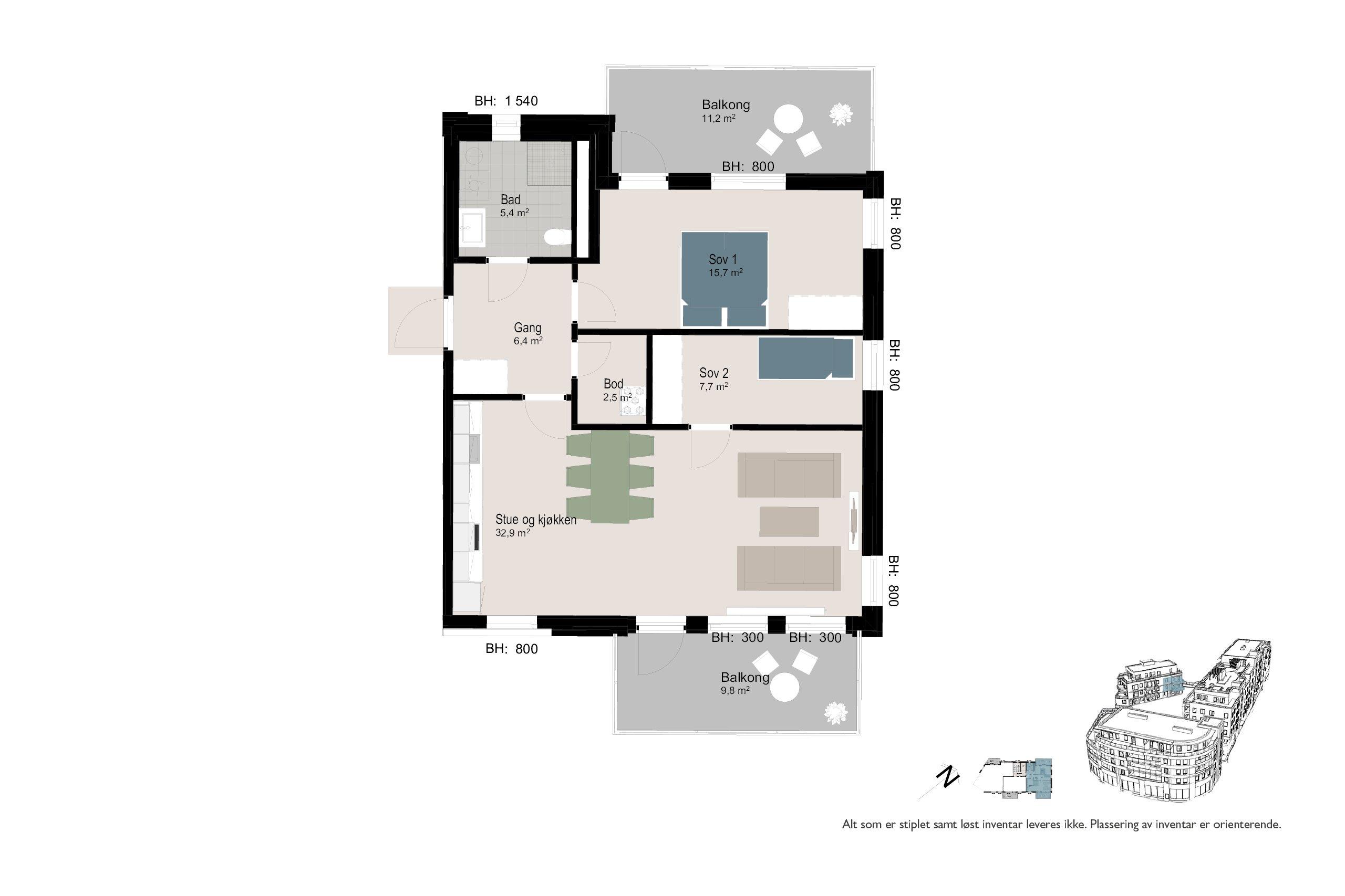 Plantegningen gjenspeiler den faktiske utformingen. Bildene er illustrasjoner og kan avvike fra virkeligheten.