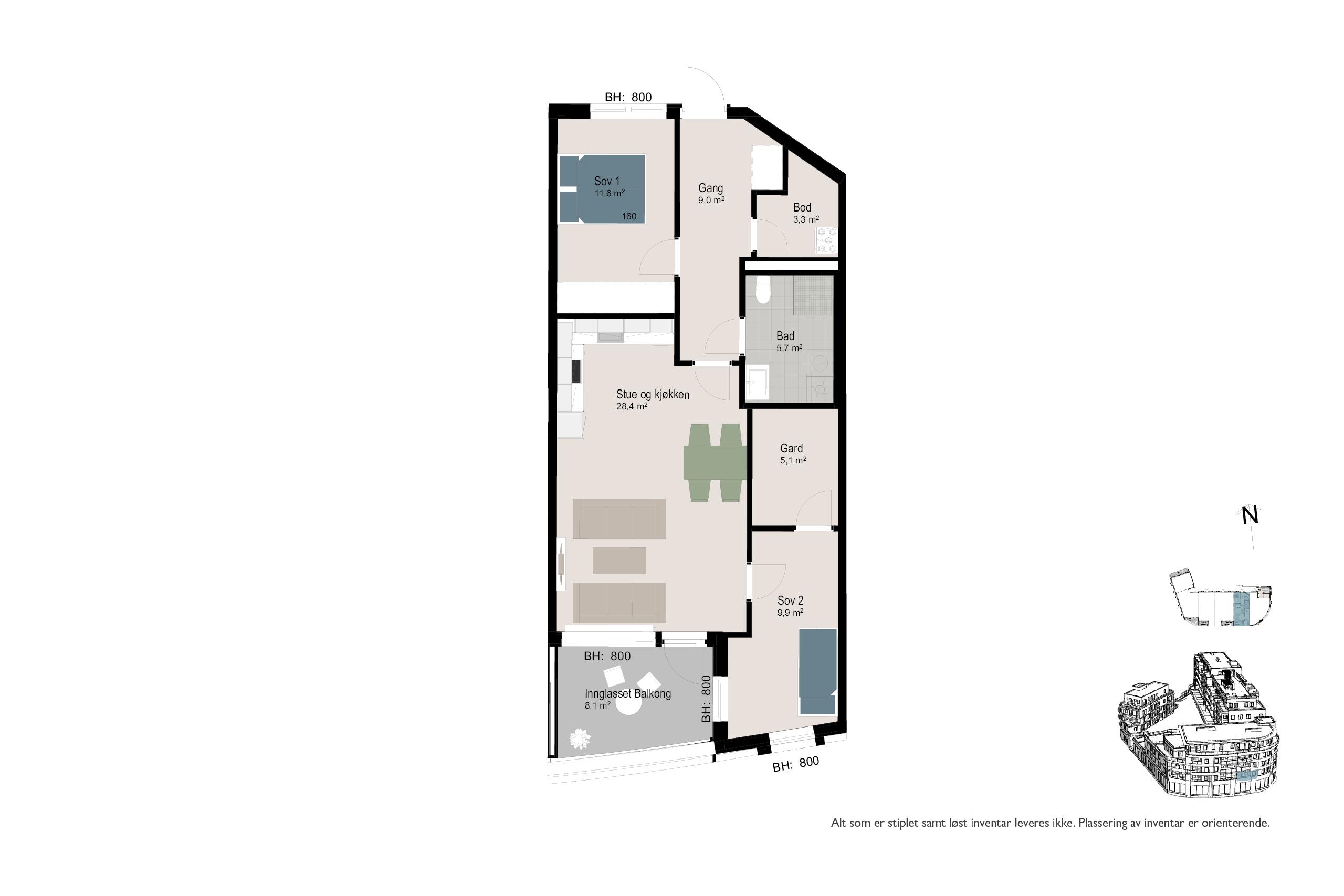 Velkommen til en gjennomtenkt endeleilighet med god planløsning. Leiligheten har to soverom, romslig stue og kjøkken, samt en lun innglasset balkong på 8,1 m² – perfekt til både avslapning og dyrking av grønne gleder.